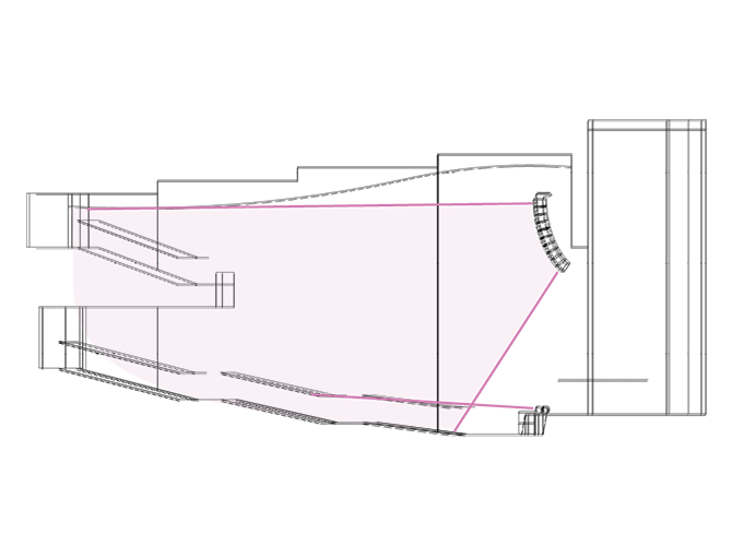 两个镜像的IV6垂直线阵列(从上到下递增曲率)覆盖整个空间,利用EASE®Focus 3中无源声学优化工具的渐进式衰减设置,在整个空间内提供均匀的SPL。