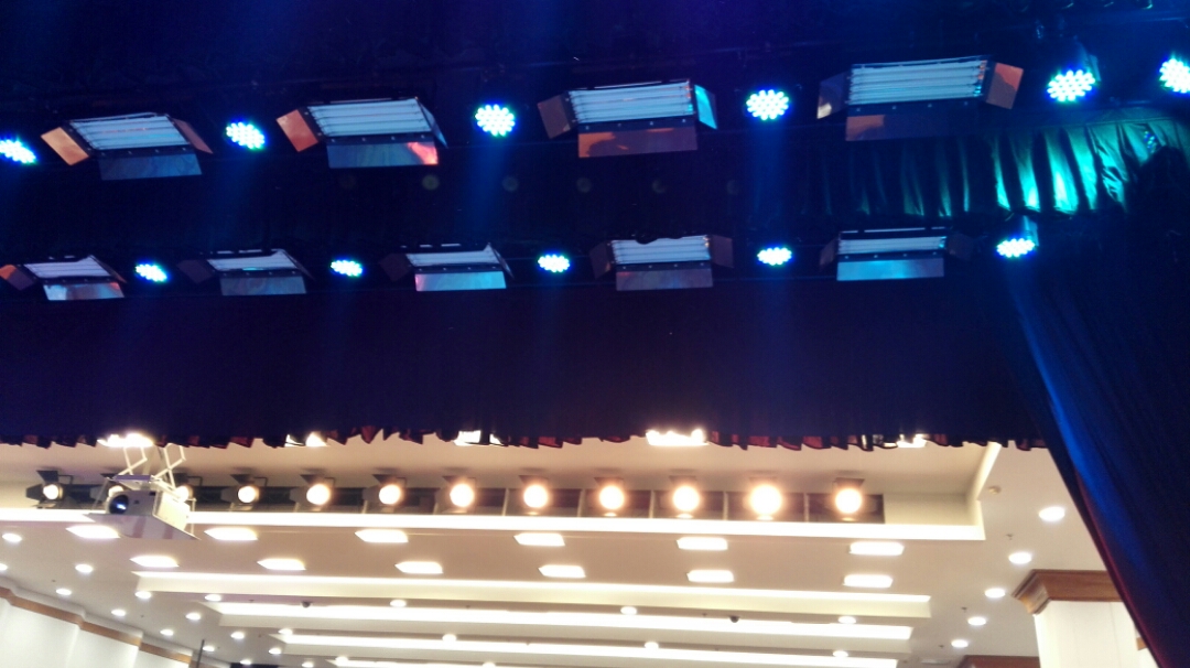 LED帕灯,及会议三基色和面光灯;显示设备使用巴可投影机+夏普高清电视。